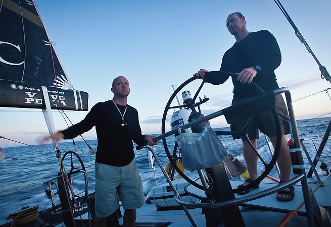 Au vent de la flotte, en compagnie des Espagnols qui naviguent quasiment à vue, Groupama 4 réussit lentement mais sûrement à se recadrer sur les néo-Zélandais et les Chinois un peu moins à l’aise à cette allure de petit largue musclé. Et en tête, Abu Dhabi a perdu des milles à chaque quart car il se situe plus en avant du front qui arrive du Labrador. La brise de Sud-Ouest est en effet plus soutenue à proximité du front, c’est à dire là où se positionnent les cinq poursuivants sur pratiquement une même ligne Nord-Sud. C’est donc de la vitesse pure qui attend les équipages pendant 48h, jusqu’après les Açores que les VO-70 devraient laisser à 200 milles dans leur Sud.