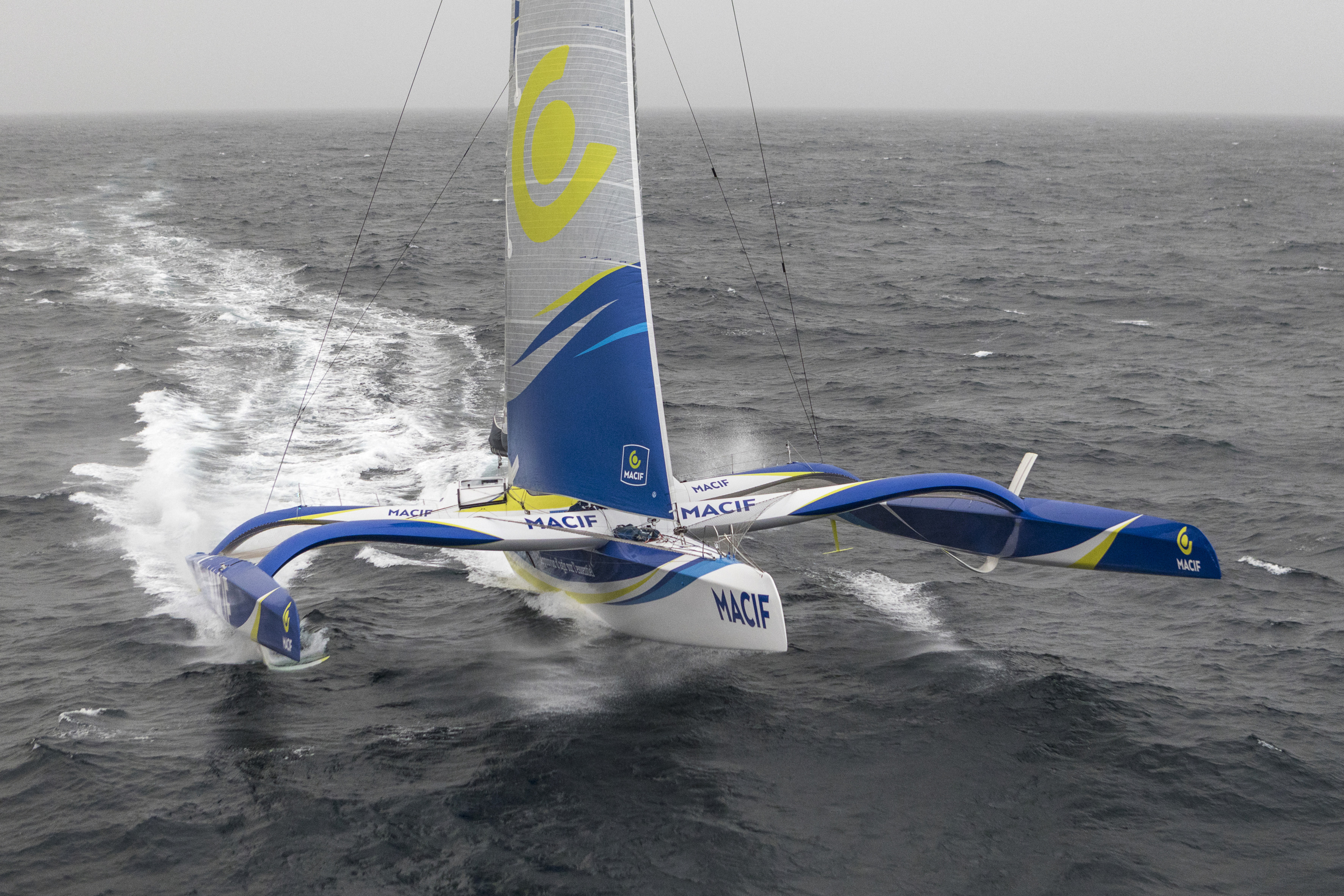 La fenêtre météorologique qui s’est ouverte samedi 4 novembre à 10h05 (heure du déclenchement du chronomètre) est à ce jour extrêmement favorable puisque François Gabart a pu avaler le golfe de Gascogne en à peine une demie journée sur une mer maniable permettant des vitesses de pointe de plus de 45 nœuds et des moyennes horaires de près de 39 nœuds ! Des chiffres « affoilants » qui confirment que dans certaines conditions d’angle par rapport au vent et d’état de la mer, le trimaran MACIF possède un potentiel performance plus élevé que son prédécesseur grâce en particulier à son devis de poids inférieur (5 tonnes de moins sur la balance) et à ces foils plus sustentateurs.