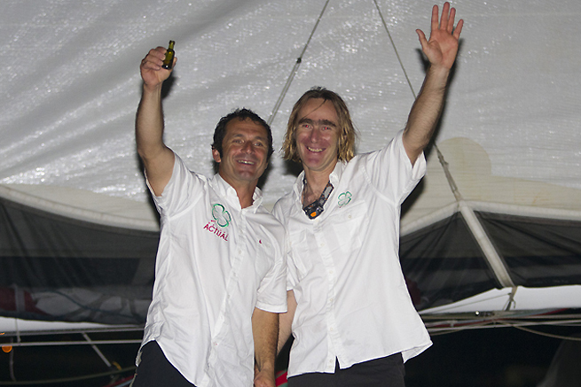 Cette dernière partie de parcours aura été négociée avec le mélange de prudence nécessaire et de volonté de rester dans un mode compétition… Au final, Yves Le Blévec obtient ici une belle revanche et signe sa première grande victoire transatlantique après ses abandons dans la Transat Jacques Vabre 2009 et la Route du Rhum 2010. Après la Vendée Saint-Pétersbourg en équipage, il démontre tout le potentiel de son plan Verdier. Un Guillaume Verdier, particulièrement content puisque ses bateaux risquent de s’imposer dans toutes les catégories. Après Virbac-Paprec 3 (dessiné en collaboration avec le cabinet VPLP), Actual lui permet de réaliser le doublé en attendant une possible arrivée victorieuse de Aquarelle.com en Class40.