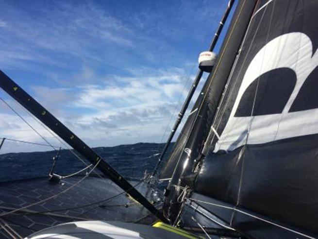 Aujourd’hui à 15 h 30, alors qu’ils naviguaient dans un vent d’une vingtaine de noeuds sur la route directe, L’amure du gennaker s’est arrachée, endommageant également des parties avant du bateau. Ils ont d’abord tenté de réparer, en vain. Ils se déroutent donc vers le Cap Vert ou leur équipe technique les attendra pour les aider à réparer. Ils reprendront rapidement leur route vers le Brésil afin de terminer dans de bonnes conditions une course qu’is ont menée en tête depuis la sortie de la Manche.