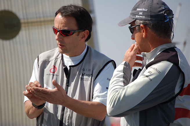 “Nous avons aujourd’hui un programme,” a déclaré Brad Butterworth, skipper de l’équipe et tacticien. Ernesto (Bertarelli) s’est engagé à construire ce multicoque et si l’affaire en cours devant les tribunaux de New York est résolue – avec notamment l’éventualité d’une date en 2009 – nous régaterons face à BMW Oracle sur un grand multicoque, ce qui est plutôt passionnant. Nous avons gardé la plupart des marins présents pour la dernière America’s Cup, mais nous sommes un peu moins nombreux puisque nous prévoyions à l’origine de courir sur un seul bateau de 90 pieds. Maintenant que nous nous préparons à un défi en multicoque, nous avons intégré de nouveaux membres spécialisés dans ce domaine, notamment Alain Gautier. Et puis nous avons toujours Nicolas Texier et Jan Dekker qui ont tous deux beaucoup d’expérience en la matière.”