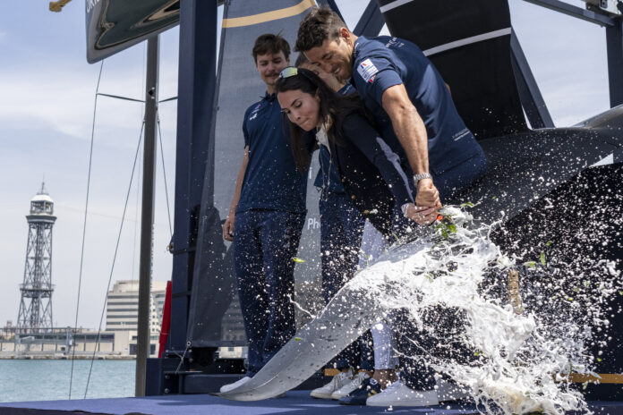 C’est une nouvelle étape pour la jeune et belle équipe française engagée sur cette 37e America’s Cup avec le baptême de l’AC75. Un bateau magnifiquement décoré et qui a été baptisé aujourd’hui sur la base française à Barcelone avec 250 invités et les 120 membres de l’équipe. Un moment chargé d’émotion qui concrétise des mois d’effort et de sacrifice de l’équipe technique pour être présent dans les temps.