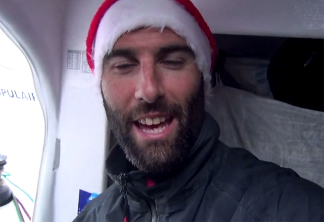 Derrière, ça déboule pour Jean-Pierre Dick (Virbac Paprec 3) qui affiche une fois encore la plus belle progression des dernières 24 h avec 423 milles. Au pied de son sapin, plus de 50 milles gagnés cette nuit sur les premiers et une journée de bons surfs à venir dans une houle de 5 à 6 mètres. Le vent de sud-ouest de 25 nœuds qui pousse Virbac Paprec 3 devrait se maintenir toute la journée et l’emmener rapidement vers la porte Ouest Pacifique, distante de 466 milles au classement de 5 h, soit une grosse journée de retard sur les leaders seulement… Même progression rapide pour Alex Thomson (Hugo Boss), installé dans un bon flux d’ouest de 25 nœuds. A minuit pile, il s’est vu offrir le passage de la porte de Nouvelle-Zélande et va profiter toute la journée d’un angle idéal pour continuer sa course exemplaire à vive allure, désormais libéré de la pression de Bernard Stamm (Cheminées Poujoulat).
