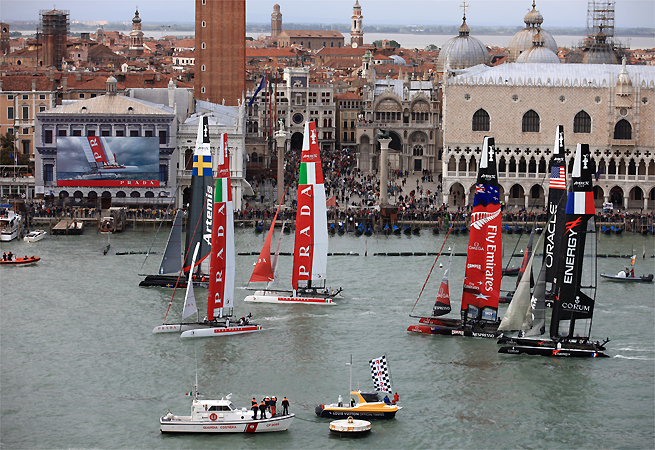 La brise a soufflé fort pendant la nuit et les conditions étaient tellement difficiles à Venise que les organisateurs n’ont lancé qu’une seule course ce dimanche. Le vent soufflait encore entre 16 et 20 noeuds cet après-midi offrant des conditions éprouvantes sur ce plan d’eau réduit.