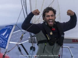 Au point de 17 heures, Aymeric Chappellier filait en route directe vers la ligne d’arrivée à près de 7 nœuds quand Giancarlo Pedote se débattait dans un vent refusant, avant de pouvoir virer de bord vers l’ouest de l’île de Sao George. Derrière ces deux-là, Milan Kolacek ayant poussé son contre-bord pour éviter Terceira très loin dans le sud, se trouvait en position délicate, directement sous la menace de Nicolas Boidevezi (Fondation Terrevent.org). On savait que l’arrivée sur les îles pouvait redistribuer les cartes, Aymeric Chappellier l’a démontré de la meilleure des manières. Il pourrait être sur la ligne d’arrivée aux alentours de 21 heures (TU+2) soit en début de soirée aux Açores dont l’heure d’été est le temps universel. Les arrivées devraient se succéder une bonne partie de la nuit, mais nul doute que le skipper rochelais a su se placer au bon endroit au bon moment. Il lui reste juste à se garder des derniers pièges de l’archipel portugais, notamment de veiller à ne pas tomber dans les dévents de la côte est de Faial. Mais ça commence à sentir bon…