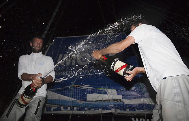 Armel Le Cléac’h et Christopher Pratt finissent donc sur le podium en étant le premier des bateaux ayant choisi la route du sud. Après avoir bataillé plusieurs jours du 13 au 17 novembre, bord à bord avec MACIF, Banque Populaire a fini par prendre le meilleur sur François Gabart et Sébastien Col à deux jours à peine de l’arrivée, ce qui témoigne de l’âpreté de la bagarre pour cette troisième place. C’est aussi une belle récompense pour Armel dont c’était la première course sur sa nouvelle monture.