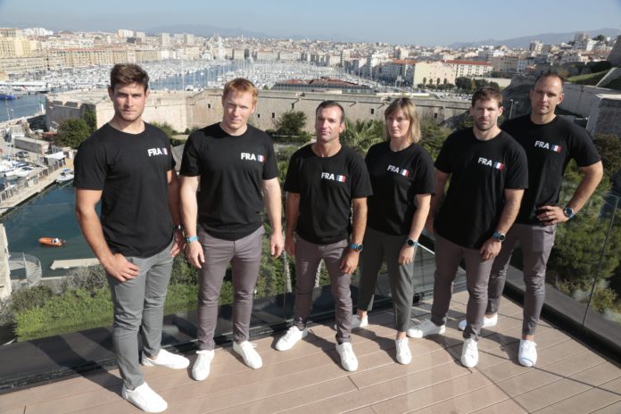 L’équipe française du circuit SAILGP de F50 a été dévoilée ce jour à Marseille. Billy Besson, quadruple champion du monde et représentant de la France aux JO en 2016 sera le barreur. On retrouvera à bord Marie Riou, Matthieu Vandame, Devan Le Bihan, Olivier Herledant, et en équipier de réserve Timothé Lapauw.
