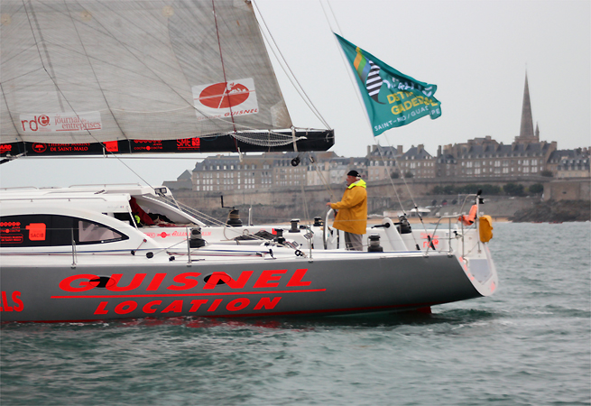 A ce moment là le système de sauvetage s’est mis en route. J’étais parfaitement calme car j’étais bien entouré, en moins de 40 milles il y avait une dizaine de bateaux. Ma vie ne risquait pas d’être mise en danger. J’ai juste eu un moment de frayeur car il y avait un gros remorqueur orange, le Sar Gravia qui remorquait le bateau Olmix de Pierre Antoine qui a voulu prendre mon bateau en remorque. Ils se sont approchés à moins de 50 centimètres, la manœuvre a un peu foiré, j’ai cru qu’ils allaient me percuter, j’ai eu un moment de frayeur. Quand ils ont vu que cela ne le faisait pas ils sont repartis. A ce moment là l’hélicoptère est arrivé, je me suis jeté à l’eau et l’hélitreuillage classique a débuté. Par contre j’ai tout perdu, bien sûr le navire, carte bancaire, téléphone, passeport etc. Après cela, tu te sens un peu dénudé… »