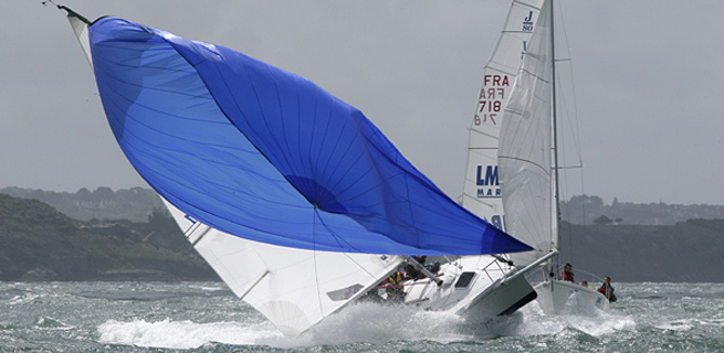 « Les premières régates nous ont permis de réfléchir aux réglages que nous avons utilisé aujourd’hui. Nous avons notamment changé ceux du mât, ce qui nous a permis d’être très à l’aise dans les remontées au vent », confiait modestement Kevin Sprouls pour expliquer sa suprématie du jour. Une belle vitesse au près doublée d’une étonnante capacité à maintenir les surfs au portant. « Nous avons eu la chance aujourd’hui de ne pas rencontrer de difficultés particulières dans les manœuvres et nous nous sommes montrés très réguliers, ce qui nous a permis de rester devant, tout en étant constamment menacés par des équipages très affûtés », complétait le skipper de TBC, également concepteur de ses voiles. Champion du monde de 420 (équipier) en 1983, multiple champion d’Europe, de Melges 24 et de Mumm 30 en 1999, de Farr 40 en 2002, Kevin Sprouls est venu pour gagner. Reste qu’il est pour l’instant encore 5ème au classement général (avec 40 pts) derrière la redoutable équipe de France Militaire de Voile. Benjamin Diouris et ses hommes se montrent en effet également très réguliers aux avant postes, toujours premiers du classement provisoire avec 13 pts (1,3,3, 4 et 2), juste devant un autre équipage de l’Ecole Navale, BMO, emmené par Victor Lanier et auteur d’une belle journée (5,2,9). Les Allemands de NEEDLES AND PINS (29 pts) complètent pour l’instant le podium devant les sociétaires de l’APCC Voiles Sportive (NANTES – SAINT NAZAIRE), qui oscillent entre la 6ème et la 10ème place. Un classement qui pourrait rapidement se voir bouleversé, dès que la 6ème manche sera courue et que le plus mauvais résultat de chaque équipage sera annulée.