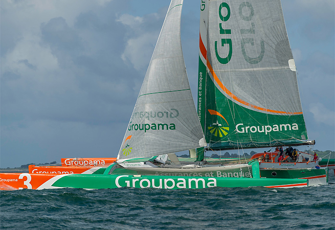 Le skipper de Groupama voulait « faire découvrir aux Anglo-Saxons la voile un peu plus française » et a emmené ses concurrents à bord de Groupama 3 pour un tour entre Groix et Lorient. À voir la tête ravie de Nicholson, Sanderson et Carabelli au ponton, Cammas a accompli sa mission. Dans 20 nœuds de vent, le trimaran qui avait battu le Trophée Jules Verne et remporté la Route du Rhum en 2010 a facilement atteint les 34 nœuds. L’hôte du jour admet que « ça change forcément de niveau de vitesse, de taille également. Je crois qu’ils se sont éclatés à pouvoir aller à ces vitesses-là aussi facilement ! »