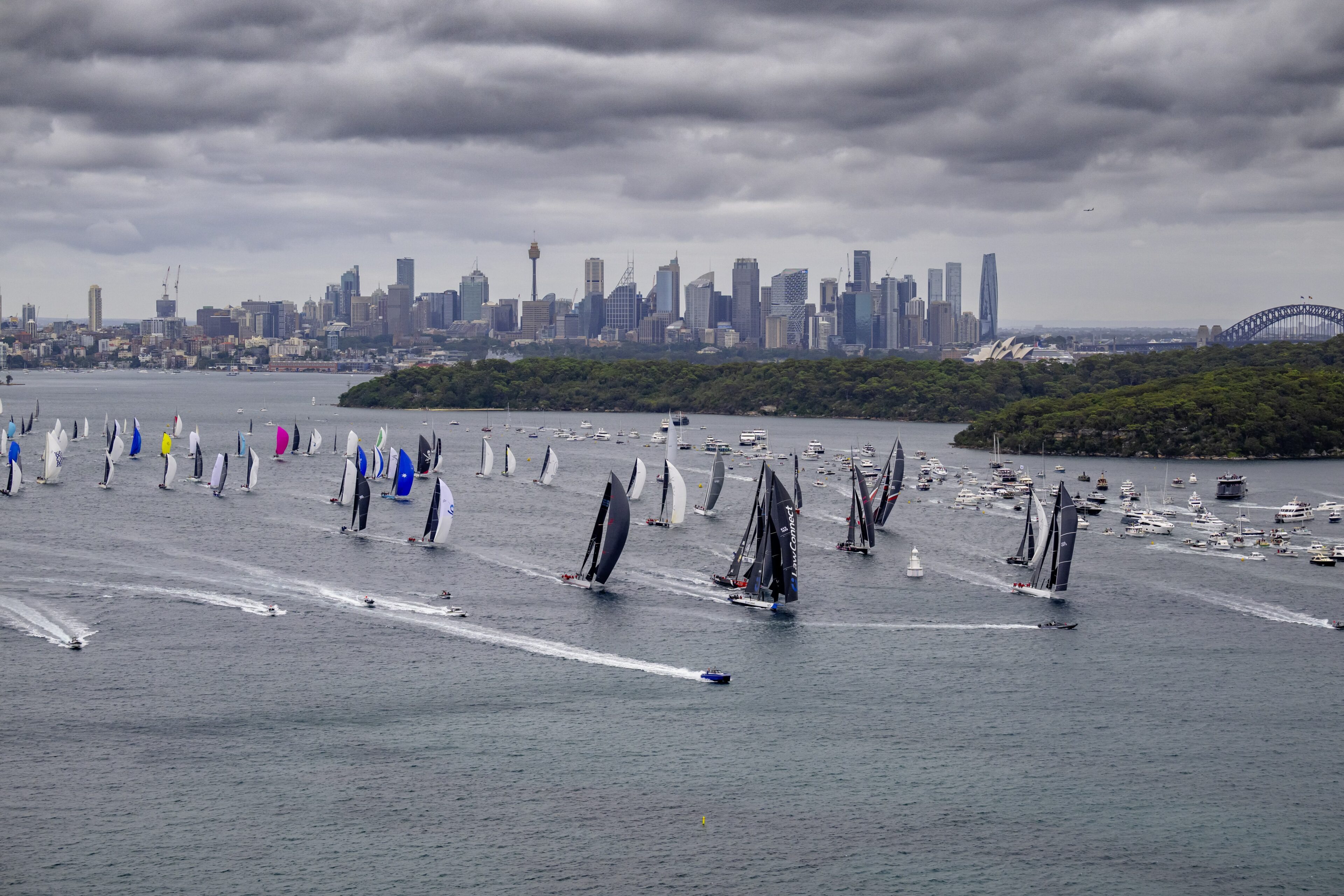 Le départ de la 80e édition anniversaire de la Sydney Hobart a été donné ce 26 décembre 2025 avec 128 bateaux. C’est le tenant du titre LawConnect qui a franchi la ligne d’arrivée en tête au coup de canon de départ tiré à 13h00 suivi par les autres grands Maxis, Master Lock Comanche et de l’équipe américaine Lucky avec Palm Beach XI dans leur sillage.