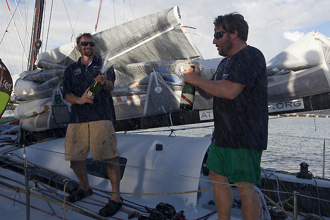 Premières réactions de Nick Halmos :"On a passé 25 jours en mer et nous avons passé un bon moment. On a bien navigué contre Jacques et JC sur Picoty. Nous avons terminé pas très loin l’un de l’autre et nous n’avons rien lâché dans les derniers 5 ou 6 jours. Les derniers 1 000 milles ont été très très durs, beaucoup de vent et puis plus de vent du tout… Nous avons eu tout ce que la météo peut proposer comme conditions dans l’Atlantique. Pour rester au contact avec ces gars là, nous avons dû tout donner."