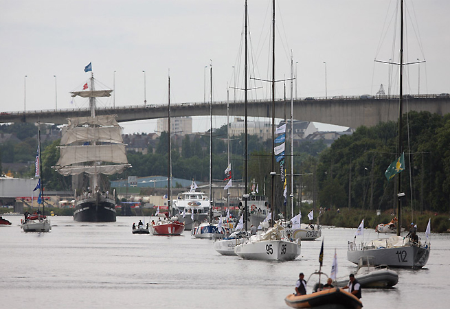 19 Class 40 sont installés, quai Vendeuvre, à Caen en attendant le départ de la Normandy Channel Race, qui sera donné dimanche à 17h00. En effet, les Norvégiens de « Solo » et les Français de « l’Equipe 2 » ont jeté l’éponge, tandis que « Mare » de l’Allemand Jorg Riechers n’arrivera que demain soir. Le Class40 skippé par Jorg Riechers et Pierre Brasseur, a démâté dans la nuit de dimanche à lundi alors qu’il se rendait à Caen. Aloys Claquin, propriétaire du sister ship de « Mare » a sympathiquement prêté son mat au duo. Le voilier rouge et blanc est parti ce matin de Brest.