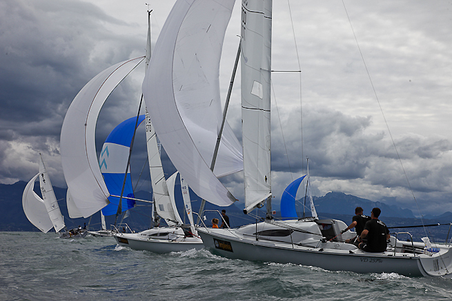 Malgré un temps nuageux, la flotte a pu profiter de quelques rayons de soleil, et d’un vent d’une dizaine de nœuds orienté à l’ouest pour s’élancer sous spi vers la première marque de parcours située au Bouveret. Le CER-Aéroport International de Genève a passé la bouée de dégagement en tête, avec sept secondes d’avance sur son poursuivant Mirabaud 1 (Cujean/Monnier). Pacman/Mayer Opticien (Forestier/Deutsch) complète le trio de tête, à une seconde du deuxième. Si ce premier classement démontre que la jeune génération est présente aux premières loges. Les équipages plus expérimentés et un peu plus âgés restent en embuscades, à l’image de Fou du Vent-Brachard (Quennoz/Von Siebenthal) qui passe quatrième.