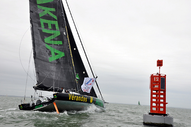 En franchissant la ligne d’arrivée à 21h08’30’’, Akena Vérandas, seul 60’ au départ de la 7ème édition du Record SNSM, s’offre le record établi par Brit’Air l’an dernier. Arnaud Boissières, accompagné de Gérald Véniard, son futur partenaire sur la Jacques Vabre et de la chanteuse Diane Tell, bouclent les 360 milles du trajet St Nazaire – Ste Marine en 26 heures, huit minutes et trente secondes soit 5h22’30’’ de moins que le temps d’Amel Le Cléac’h. Partis du port Ligérien dimanche à 19 heures, les trois protagonistes ont évolué à 13,77 nœuds de moyenne dans des conditions favorables mais néanmoins marquées par le manque de visibilité.