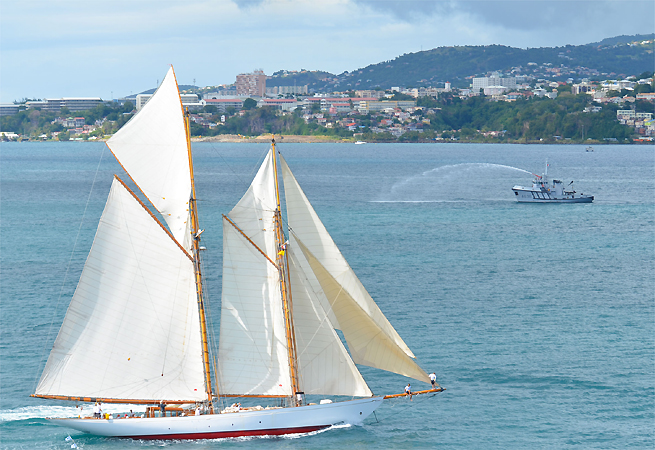 Altair, grande goélette aurique de 1931 s’impose en temps réel sur la Panerai Transat Classique 2015 en franchissant la ligne d’arrivée à 18h23 ce mardi. Une remarquable performance pour Altair et son équipage qui se sont battus jusqu’à la ligne d’arrivée. Depuis le rocher du Diamant, au Sud de l’île, l’équipage d’Altair a offert un show d’exception pour faire éclater son talent de manœuvrier : empannages, envoi du flèche, envoi du gollywobbler, affalages en série et plusieurs virements de bord pour rejoindre la ligne. Après un dernier virement bord, Altair s’adjugeait donc la première place en temps réel en 13 jours 3 heures 12 minutes et 53 secondes, à environ 8,8 nœuds de moyenne.
