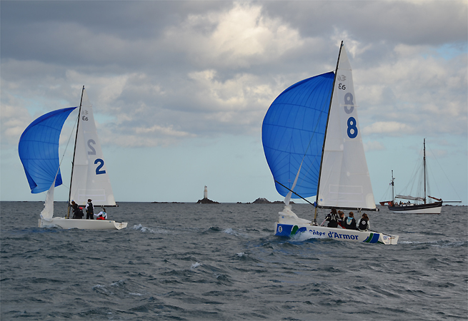 L’ambiance était chaleureuse ce samedi matin au Sport nautique de Saint-Quay-Portrieux. À 10h30, les équipages participant au Championnat de France Promotion de Match Racing féminin ont commencé à se mettre en place sous un soleil radieux et un vent soutenu. Alors, les duels se sont enchainés, les coques se frôlaient, tellement les combats étaient rapprochés. Le vent a soufflé plus fort que prévu : 25 nœuds avec des coups de vents à 33 nœuds. Conséquence : quelques poulies et barber hauler ont cédé mais les responsables techniques ont vite réagi et tout réparé en quelques minutes.