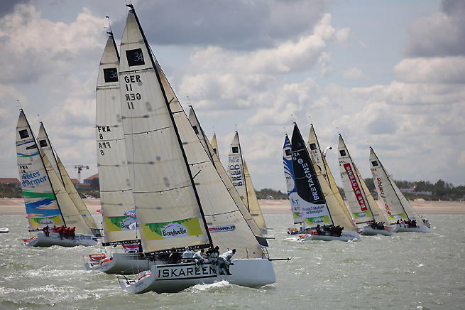 Suite à un mouvement de protestation des plaisanciers, les bateaux du Tour de France à la voile ne pouvaient pas accéder au SAS ce matin à Dunkerque. Après ce retard les organisateurs ont décidé d’annuler les deux manches du jour sur parcours banane, car des rafales de 30 noeuds balaient le plan d’eau.