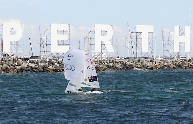 La foule australienne amassée sur le front de mer à Perth était heureuse de voir deux nouvelles victoires pour Mat Belcher et Malcolm Page, qui dominent de loin cette épreuve de 470 au Championnat du Monde de l’ISAF. Lors de la septième manche de la semaine ils étaient néanmoins mis sous pression par le tandem français, Nicolas Charbonnier et Jérémie Mion, qui a dû se contenter de la deuxième place. Le vent a ensuite fait défaut et il fallait patienter à Perth pendant une heure. Ensuite le Comité a dû lancer le départ quatre fois pour signaler un bon départ. Onze équipages ont été disqualifiés, dont le duo israélien Kruger et Sela. Cette fois ce sont le Britanniques, Nic Asher et Elliot Willis (GBR) et leurs compatriotes Luke Patience et Stuart Bithell, qui complètent le podium devant un autre tandem français, Pierre Leboucher et Vincent Garos.