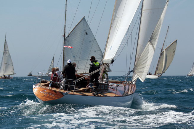 Départ rade sud, vent de secteur sud est, 15-18 nœuds : d’entrée de jeu, les grands auriques Mariska, Moonbeam III et Moonbeam IV, moins gênés par l’état d’une mer assez formée par un courant d’est établi, choisissent de tirer un grand bord au large pour contourner Riou d’une traite. Passé la sortie de la Rade, Mariska se lance ensuite dans une voie assez osée au « rase cailloux ».