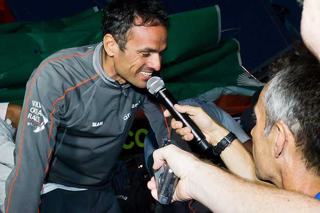 La flotte de la Volvo Ocean race est de nouveau au complet au départ ce matin de Malé aux Maldives. Les 6 concurrents ont pris le départ à 9h (heure française). 5 nœuds de brise dans la baie ont offert un départ un peu anémique à cette première partie de course. Peu avant le départ le skipper de Groupama a présenté les difficultés de cette troisième étape vers Sanya en Chine.