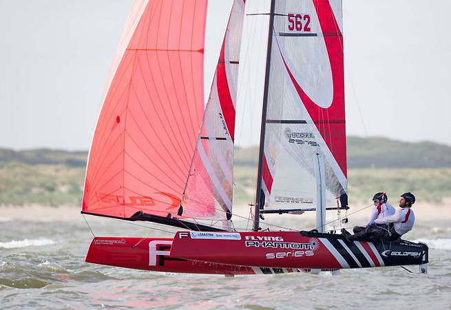 Plus de 280 multis ont pris le départ du Tour de Texel ce samedi. En nombre, la plus importante épreuve de l’année s’est disputée pour la 37ème fois au nord des Pays-Bas. Au programme un parcours de 63 milles autour de l’île. Le Flying Phantom visait un nouveau succès après ses résultats lors du Bol d’Or et de l’Eurocat, mais après avoir mené la flotte, le catamaran volant a talonné sur un banc de sable. Le crochet de GV s’est ensuite cassé contraignant Benjamin Amiot et Gurvan Bontemps à l’abandon. Ils auront une nouvelle occasion de briller lors du Championnat du Monde F18 en Irlande.