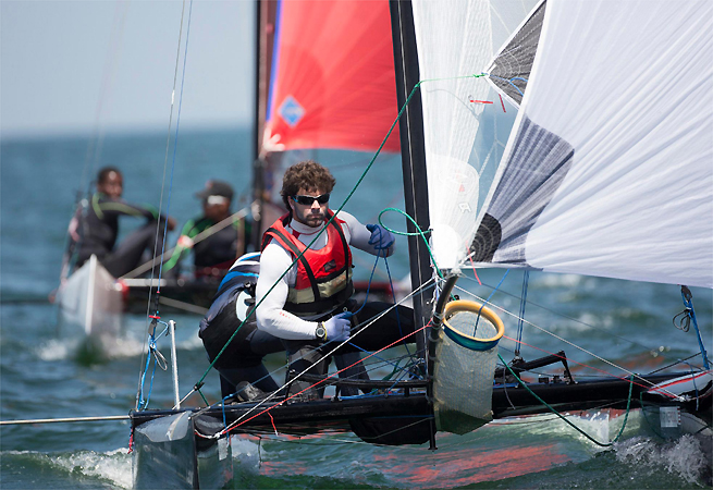 222 athlètes participent à la semaine de Mussanah organisée par Oman Sail aux Emirats. 27 nations sont représentées en Laser, F18, RS :X et Optimist. Au terme de deux journées de régate, le tandem français Gurvan Bontemps et Benjamin Amiot occupe la tête du classement provisoire en F18. Les conditions étaient idéales hier avec une brise régulière de 12 noeuds engendrant des manches serrées. Les Français se disent impressionnés par la performance de l’équipe omanaise formée par Musab Al Hadi et Ahmed Al Balushi, qui est à égalité de points avec eux. Les deux équipes se sont rencontrées l’année dernière à Carnac lorsque les Omanais se trouvaient loin derrière, mais à domicile et après de longues séances d’entraînement, ils ont clairement fait énormément de progrès. Les Allemands, Jens Uwe et John Adreas complètent le podium provisoire à 6 points des leaders.