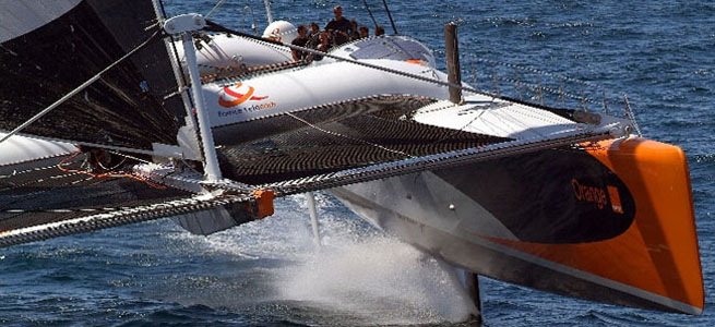 Le site internet www.orange-sailing-team.com nous informe que le maxi-catamaran Orange II de Bruno Peyron a quitté Lorient ce jeudi soir et mis le cap sur New York afin de s’aligner au départ du Record de la Traversée de l’Atlantique nord en équipage. Une tentative qui pourrait avoir lieu entre fin mai et début juillet si les conditions météo le permettent. Le record à battre est toujours celui de Steve Fossett à bord du maxi-cata PlayStation (en 4 jours et 17h), établi en octobre 2004 et que manqua de quelques minutes seulement l’équipage de Peyron en août 2004. One more time…