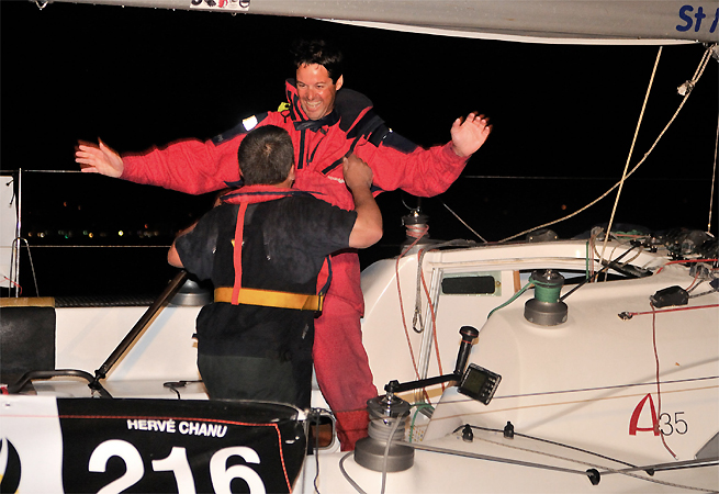 Le premier équipage en double a franchi la ligne de la Transquadra ce matin à 8h04. L’A35 Thinkanalytics appartenant au Malouin Hervé Chanu, qui courait avec le Suisse Christophe Peclard, qui a tout juste 40 ans devrait être suivi de Victoria, Cruse Control et Nautistock, qui sont à environ 30 milles de l’arrivée. Le vent a molli en approche de la Martinique, et les vitesses sont désormais inférieures à 6 noeuds à moins de 10 milles de l'Ilet Cabrits. A noter que Thinkanalytics était classé 10ème dans la première étape entre Saint-Nazaire et Madère en juillet dernier. Du côté des solitaires, le JPK 10.10 de Philippe Vicariot, Swinhoe a franchi la ligne d'arrivée en vainqueur à 15h14.