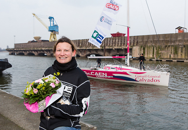Jeudi dernier à Hérouville-Saint-Clair, la navigatrice calvadosienne Claire Pruvot a dévoilé devant près de 150 personnes son Figaro Bénéteau, le “Port de Caen Ouisteham” avec sa coque rose et bleue. Son Figaro Benéteau sorti de 3 semaines de chantier chez V1D2 propose un décor aux couleurs vives, dynamique, original et féminin. Pour rappeler ses origines normandes, les voiles arborent des fleurs de pommiers. Claire pourra naviguer sous ses nouvelles couleurs, pour la première fois en compétition, lors de la Solo Arrimer, du 9 au 13 avril, aux Sables d’Olonne avant d’enchaîner avec la Solo Concarneau avant la Solitaire du Figaro en juin.