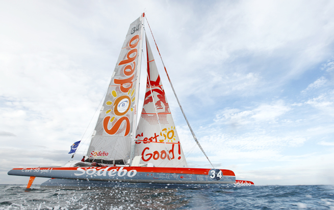 Thomas Coville a été très ralenti pendant la nuit lors de son entrée dans le Pot au Noir. Jusqu’au milieu de la soirée, il a réussi à garder une vitesse supérieure à 20 noeuds, mais très subitement le vent a faibli et sa vitesse a chuté. Parfois quasiment immobilisé pendant la nuit, le skipper de Sodebo a dû effectuer beaucoup de manoeuvres pour ne pas rester englué et a brisé trois lattes de grand voile lors d’une manœuvre dans un grain. Il n’a pas fermé l’œil de la nuit et a réussi à remplacer ces lattes vers 5 heures ce vendredi matin.Du coup son avance sur Francis Joyon fond et ce matin à 8h30, il accuse même un retard de 7,7 milles sur le parcours d’IDEC. Il est toujours très difficile de prévoir les conditions locales dans cette zone de convergence intertropicale, mais pour les heures à venir, le vent devrait rester très faible. Le trimaran pointe encore à 300 milles de l’équateur qu’il pourrait atteindre entre ce soir et demain samedi.