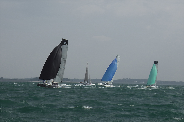 Les participants à l’Eurocat se sont rendus sur les zones de course, pour un premiersignal d’avertissement prévu à 9h30 ce mercredi. Les conditions étaient beaucoup plus favorables que la veille puisque le vent soufflait seulement entre 18 et 20 nœuds mollissant à 15 nœuds avec une mer formée. Les catamarans se sont élancés sur le plan d’eau offrant un beau spectacle lors des passages aux bouées, des envois de spi et aussi lors des magnifiques dessalages.