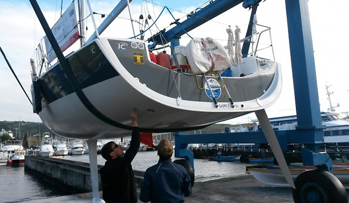 Avec l’arrivée hier soir de Gildas Mahé et de ses trois mousquetaires, Damien Guillou, Corentin Horeau et Gwénolé Gahinet, la petite troupe des solitaires de la Lorient Horta Solo s’est offerte une pause méritée. Dès ce matin, les préparateurs et l’équipe de la marina d’Horta s’activaient pour sortir le bateau de Gildas Mahé de l’eau et faire une évaluation détaillée des travaux à engager suite à sa collision avec un OFNI. Au final, les premières analyses sont rassurantes : le matériel endommagé arrivera demain par avion dans la bagages d’un des permanents du Pôle Finistère Course au Large. Le safran de rechange est déjà sur place. L’équipe des préparateurs s’apprête à poncer, stratifier et changer les pièces endommagées. Jeudi matin, le bateau de Gildas Mahé devrait retrouver l’élément liquide.