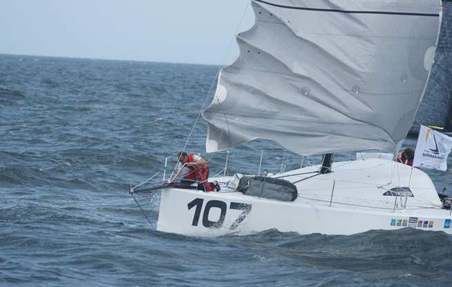 Les seize Class40 ont pris le départ de la seconde édition de la Normandy Channel Race à 14h précise. Les conditions météo étaient idéales : 15/20 noeuds de vent et du soleil. La flotte s’est élancée devant Ouistreham. Un parcours de dégagement a permis aux skippers de se mettre dans la course avant d’attaquer un long bord qui les mène vers les îles Saint Marcouf.