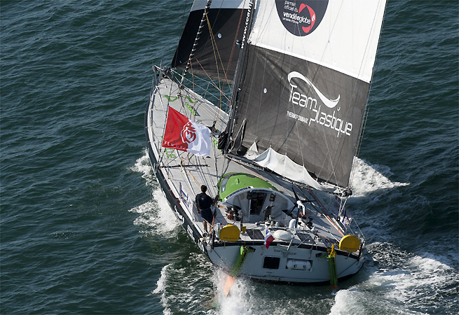 C’est peut-être la nuit la plus glaciale qu’Alessandro Di Benedetto ait eu à affronter pendant son tour du monde ! Au près, dans l’humidité, en veille permanente pour contrôler le trafic potentiellement intense à proximité des côtes, le skipper de Team Plastique a progressé toute la nuit dans un vent d’est-nord-est d’une trentaine de nœuds. L’orientation du vent empêchant Alessandro de faire route directe vers les Sables d’Olonne, il a été obligé de monter très haut pour virer vers 4 h 30 à 10 milles seulement de l’archipel des Glénan ! Au large de Noirmoutier, le 11e concurrent du Vendée Globe fait maintenant route directe vers les Sables d’Olonne, dans un vent d’est-nord-est de 20-25 nœuds qui devrait mollir à une quinzaine de nœuds à l’approche de la ligne, distante de moins de 60 milles. L’arrivée du skipper est prévue entre 14 et 16 h.