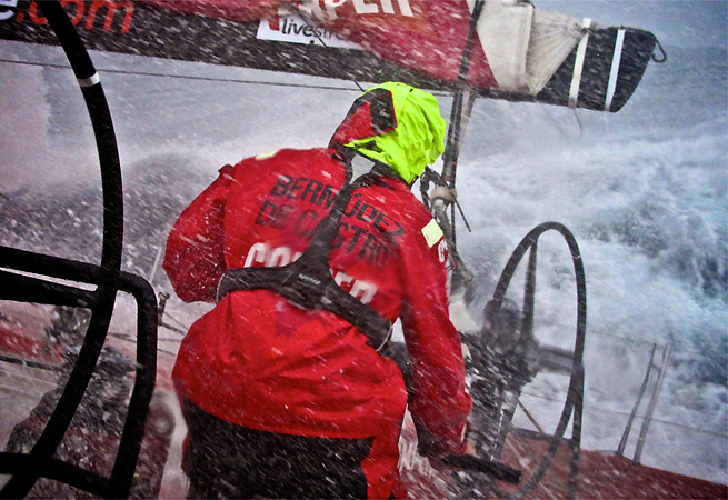 Pour la première fois dans cette édition de la Volvo Ocean Race, les marins font face à une mer très inconfortable, les contraignant à réduire la voilure pour préserver les bateaux. Un certain nombre de participants sont en mauvaise forme ce lundi avec un mal de mer généralisé dans la flotte. « Aujourd'hui, j'ai été malade en mer pour la première fois de ma vie, » avoue Ian Walker, le skipper d'Abu Dhabi Ocean Racing. « Heureusement, j'ai jusqu'à présent réussi à garder le poulet rôti et la purée lyophilisés à l'intérieur (contrairement à d'autres à bord) et les conditions s'améliorent. »