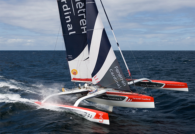 C’est finalement mercredi vers 16h00, qu’Erwan Le Roux et Yann Elies vont prendre le départ du convoyage de FenêtréA Cardinal jusqu’au Havre. A l’origine, les deux hommes avaient prévu de partir lundi, mais les conditions météorologiques les ont contraints à changer de programme. Il faut dire que la situation météo n’est guère engageante. Depuis deux semaines, les trains de dépression se succèdent sur l’Atlantique Nord générant des vents forts à très forts de sud-ouest et soulevant une houle estimée à plus de sept mètres au large du plateau continental.