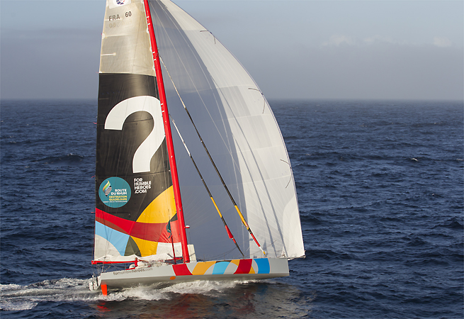 A quatre jours de l’arrivée en Guadeloupe, Armel Tripon reste concentré au maximum. L’incident n’est jamais loin sur les 60 pieds lancés à pleine vitesse sous spi. Armel Tripon : “C’est la nuit ici au milieu de l’Atlantique, j’ai vu quelques éclairs au loin mais depuis quelques heures le vent est plus stable et un peu moins fort qu’hier. C’est plutôt pas mal, même si c’est quand même stressant sous spi en solitaire. Je suis très concentré pour ne pas faire de bêtises. Je suis en déficit de sommeil car les nuits sont stressantes et à l’intérieur du bateau il y a un vacarme terrible. Je me souviens de Christophe Auguin (vainqueur du Vendée Globe 1996-1997 ndr) qui disait déjà que le bruit à l’intérieur de ces bateaux rendait fou et qu’il fallait faire quelque chose pour le réduire. Plus de 15 ans plus tard, les bateaux ont encore accéléré, sont encore plus raides et donc encore plus bruyants. C’est un truc de malade.”