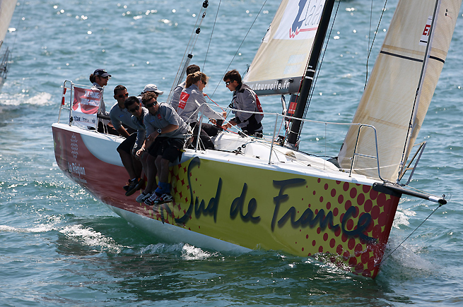 Dès les premiers mètres de la Manche 1, le marquage respectif du trio de tête s’organisait, et sans surprise véritable, Dunkerque, Sud De France / Languedoc-Roussillon et CMB pointaient leur étrave aux 3 premières places, soit l’ordre exact du classement général. Mais la descente sous spi allait redistribuer les cartes quand Dunkerque commettait une faute à l’envoi et devait immédiatement réparer en faisant un 360°. Bretons et Sudistes s’échappaient : On ne les reverrait plus.