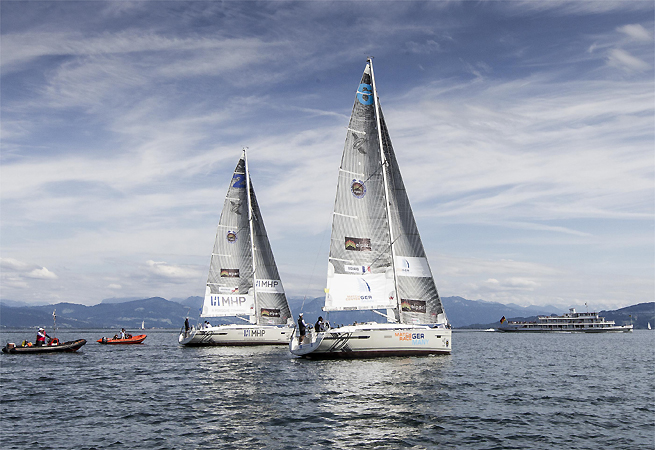 Le lac de Constance accueille toujours à la Pentecôte l’étape allemande du World Match Racing Tour et malgré les changements du programme cette année, 2015 ne dérogera pas à la règle. Douze équipes représentant dix pays s’aligneront à Langenargen du 21 au 25 mai. Parmi les favoris, on trouvera le Suisse Eric Monnin, le Danois, Joachim Aschenbrenner et le Néo-Zélandais, Reuben Corbett. Pour rappel les autres ténors du circuit se trouvent en Californie cette semaine pour la Congressional Cup et ne seront donc pas présents sur le lac cette année. C’est ainsi que parmi les inscrits on trouve de jeunes talents “locaux” qui ont gagné leur billet pour cette étape allemande, dont le champion de match racing allemand, Tino Ellegast du Yacht Club de Constance, mais également le Hambourgeois, qui a participé à la Coupe de l’America et la Volvo Ocean Race, Tim Kröger.