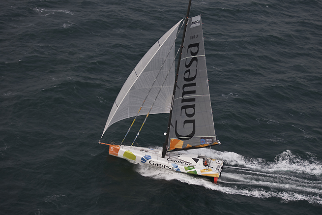 En passant la ligne d’arrivée (porte de sécurité au large du Cap Finisterre) à 09 h 58 min 00 sec, ce Jeudi 15 décembre, Mike Golding sur Gamesa s’offre la quatrième place sur la Transat B to B 2011. Le temps de course de Mike Golding est de 9 jours 18 heures 58 minutes 20 secondes. Sur le parcours théorique de 2620 mn, Gamesa a affiché une vitesse moyenne de 11,15 nœuds.