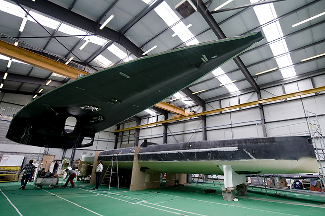 Depuis la mise en chantier du monocoque « MACIF » en décembre dernier, François a participé à la Barcelona World Race aux côtés de Michel Desjoyeaux et a mis en place une équipe technique. Aujourd’hui, coque et pont sont prêts à être assemblés. « MACIF » aura plus que des cousinages avec le dernier Foncia de Michel Desjoyeaux étant issu du même moule. Néanmoins, le mois de course sur la Barcelona World Race a d’ores et déjà permis de procéder à des modifications du plan de pont, ainsi que quelques innovations techniques. MACIF devrait toucher l’eau dans le courant du mois d’août.