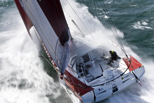 A l’heure où l’infortuné Loïck Peyron connaissait une avarie rédhibitoire avec le démâtage hier en milieu de journée de son Gitana 80, Yann Eliès était au prise avec une sérieuse avarie, le bris de trois lattes de grand voile occasionné par un départ à l’abattée du bateau. Rien qui ne condamne irrévocablement la poursuite de la course, certes, mais le genre de désagrément qui se solde en solitaire par une pleine journée d’un travail Herculéen, Yann Eliès perché en bout de bôme, peinant à extraire les immenses lattes (6 à 7 mètres) de carbone. Grand voile totalement affalée, Generali a, par voie de conséquence, considérablement ralenti durant toute la journée, l’incident survenu à 9 heures du matin n’ayant trouvé son heureuse conclusion que passé 19 heures 30. “Je suis fier de ce que je viens d’accomplir, je ne me croyais pas capable d’une telle réparation” a expliqué le skipper de Generali en revenant sur l’origine de sa mésaventure. “Je poussais assez fort sur le bateau sous gennaker car en glissant vers le sud l’angle au vent était favorable à la vitesse” décrit il, “Quand soudain, et pour une cause qui m’est inconnue, le safran sous le vent s’est brutalement relevé. Avec un seul safran dans l’eau, les pilotes automatiques sont devenus comme fous” poursuit Yann, “car les données qu’ils recevaient n’étaient plus conformes à leurs paramètres. “S’en est suivi l’inéluctable sortie de route, le monocoque virant de bord au vent arrière, avec un grand mouvement de sa grand voile très mal perçu des fameuses lattes, ces grandes tiges rigides de carbone qui donne forme et profondeur à la voile. “Trois lattes ont ainsi cédé. Je n’avais pas d’autre choix que de les changer ou les réparer, en ralentissant considérablement le bateau puisque j’ai dû totalement affaler la grand voile”.