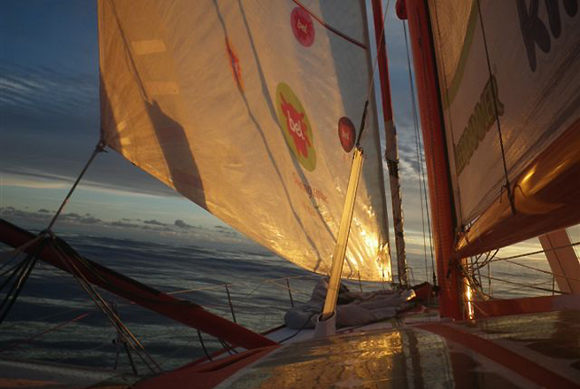 Groupe Bel est actuellement en convoyage vers son port d’attache de Port Camargue. Le voyage se prolonge car les conditions météo sont compliquées. Vendredi dernier Kito de Pavant est parti de Cascaïs au Portugal avec deux membres de son équipe technique. Ce lundi ils sont passés par le détroit de Gibraltar, mais avec très peu de vent. Ce matin, le bateau s’est amarré à Barcelone à quelques mètres de l’endroit où il était il y a tout juste un an avant le départ de la Barcelona World Race. Cette escale est la résultante de plusieurs facteurs défavorables et notamment une météo exécrable, du mistral après une pétole tenace le long des cotes espagnoles. Pendant la nuit, l’équipage a dû beaucoup manoeuvrer pour plaire aux caprices d’Eole, le vent passant rapidement de 0 à 40 noeuds. Une fenêtre météo se dessine vendredi pour passer les Pyrénées mais Kito et ses hommes en attendent confirmation…