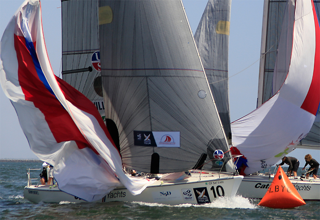 Si la surprise du Round Robin de cette étape californienne du World MatcH Racing Tour à Long Beach a été la performance mitigée du skipper britannique Ian Williams, contraint de passer par la phase de repêchage, la suite de l’épreuve ce samedi était conforme à toutes les attentes avec les quatre favoris désormais dans le dernier carré.