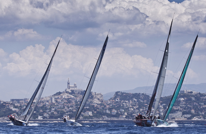 Les dix TP52 participant au Trophée de Marseille auraient dû commencer leur manche d’entraînement à 13 heures ce mardi. Mais il pleut des trombes sur Marseille et les dix monocoques ont dû patienter pendant une heure à terre. Cette situation pluvio-orageuse avec de fortes précipitations a même poussé Météo France à placer la zone en vigilance orange.