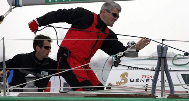 "Ca avance ! Nous avons toujours 20 noeuds de vent. Comme personne n’a d’infos météo chacun se place en fonction des dernières infos et de son expérience. Il y aura peut-être la possibilité d’attaquer, par le sud, par le nord …? Le vent n’est pas très régulier, il fait très chaud. Les nuits sont exceptionnelles et très claires, il fait frais. Alors nous faisons des quarts de 3 heures à la barre et 3 heures de sommeil. Le jour, quand on n’est pas à la barre, on est à l’intérieur à se reposer, ranger les bricoles, préparer les repas, cogiter sur la météo. Nous pensons aussi à nos futurs bateaux 60′ dont la construction a bien avançé depuis notre départ. Nous n’avons pas de règle. On ne se prend pas la tête, on avance au mieux. S’il y a le feu à l’arrivée, nous serons prêts !!!"