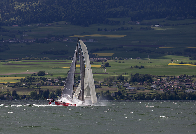 La première journée du Grand-Prix d’Estavayer, deuxième étape du TeamWork M2 Speed Tour, n’a pas déçu les participants. Si la flotte a navigué dans un petit nord-est pour la première manche en début d’après midi, le vent d’ouest est ensuite rentré assez fort, et trois manches ont pu être disputées dans des conditions musclées.