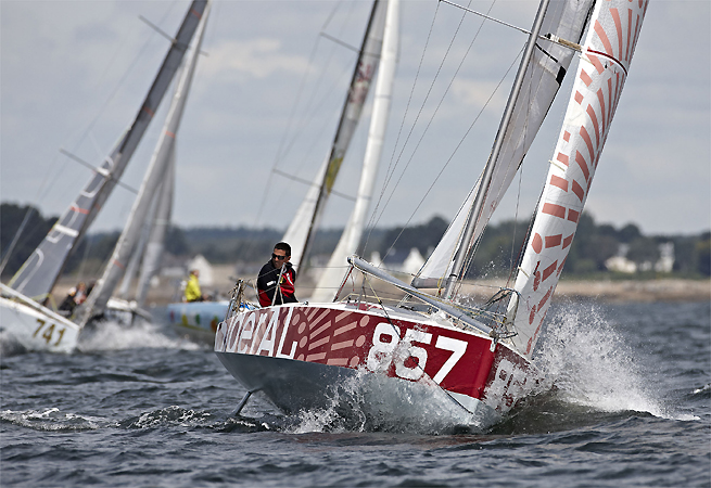 Un fort coup de vent, attendu mardi sur le Golfe de Gascogne, a contraint la direction de course de la Mini en Mai à revoir son programme initial. La grande boucle de 500 milles va être réduite et scindée en deux parcours. Le premier sera disputé demain lundi ; l’autre, dès que les conditions météo le permettront. Entre les deux, les concurrents seront à l’abri, à la Société Nautique de la Trinité-sur-mer.