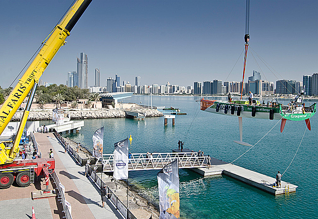 Le chargement des cinq VOR70 a commencé ce dimanche à Sharjah avec un peu de retard à cause du Chammal qui soufflait assez fort. La flotte est arrivée dans le port hier soir après le sprint d’Abh Dhabi. Camper a été le premier à être chargé à bord du cargo, qui va transporter les cinq monocoques vers le port secret au milieu d’océan Indien. Les organisateurs espèrent pouvoir terminer le chargement en fin de journée malgré un léger retard dans le programme ce matin.